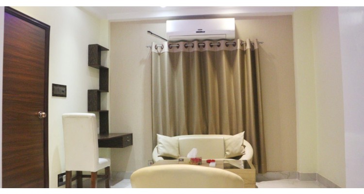 1. One Double Bed 2. Smart LED TV 3. Living Room 4. Safety Locker 5. Refrigerator 6. Air Condition